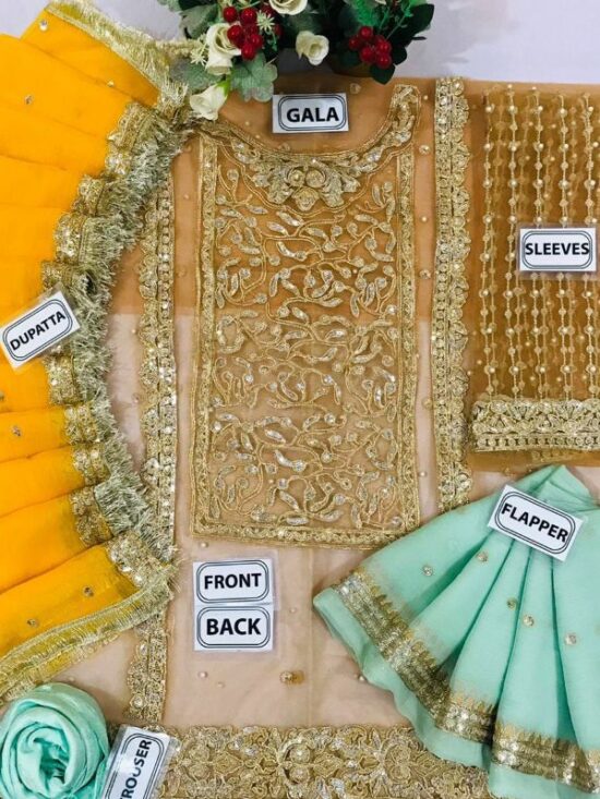 •Front Net Heavy Embroidered With Dori Work & Stone Hand Work