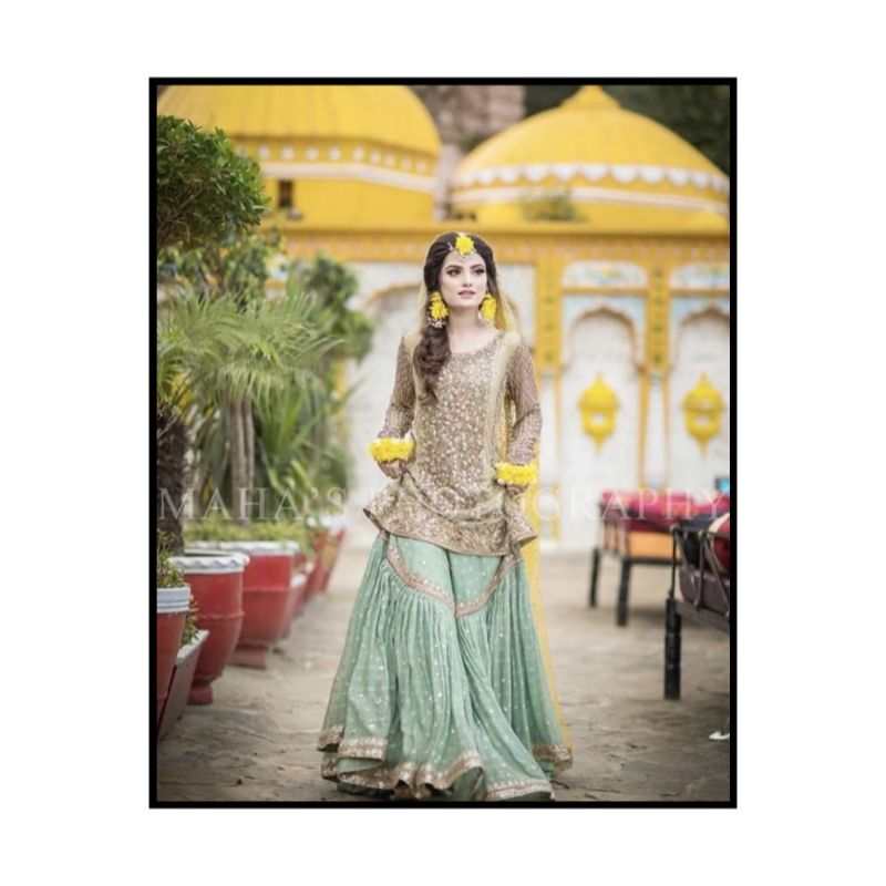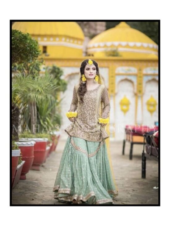 •Net Sleeves Heavy Embroidered With Machine Hand Work